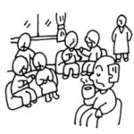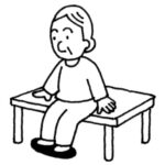 • In een zittende houding blijven, op een stoel of op de vloer, gedurende enige tijd, zolang als nodig is, zoals bij het zitten aan een bureau of tafel.