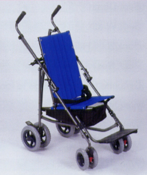 De standaard duwwandelwagen – type buggy groot formaat is bedoeld voor een gebruiker met een vertraagde psychomotorische ontwikkeling, waardoor de stapfunctie nog niet voldoende verworven is.